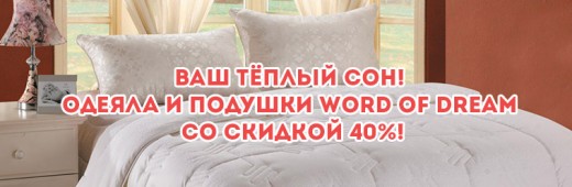 Описание акции: | Ваш тёплый сон! Одеяла и подушки Word of Dream со скидкой 40%!![]() | ||||||