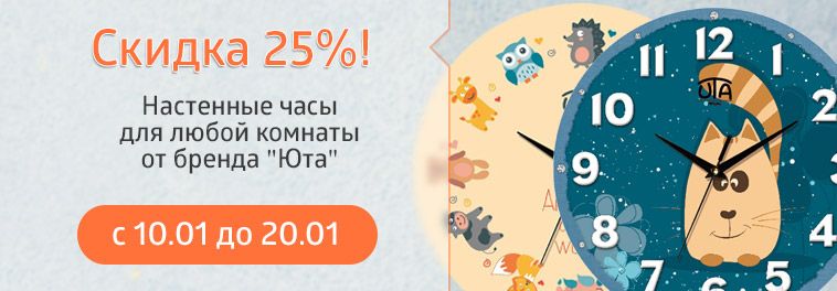 | Описание акции: | ![]() -25% на настенные часы для любой комнаты | ||||||