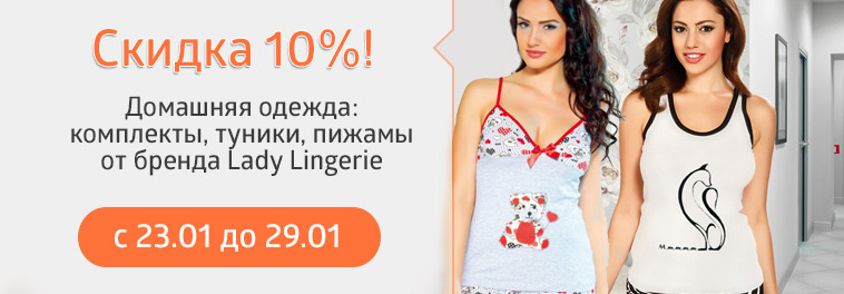 | Описание акции: | Домашняя одежда со скидкой -10%![]() | ||||||