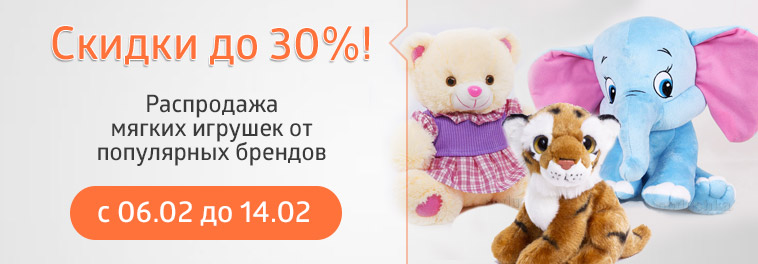 | Описание акции: | Распродажа мягких игрушек от популярных брендов![]() | ||||||
