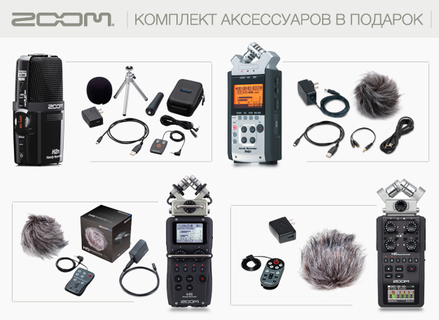 Приобретай любой акционный диктофон ZOOM получай комплект аксессуаров ZOOM в подарок!