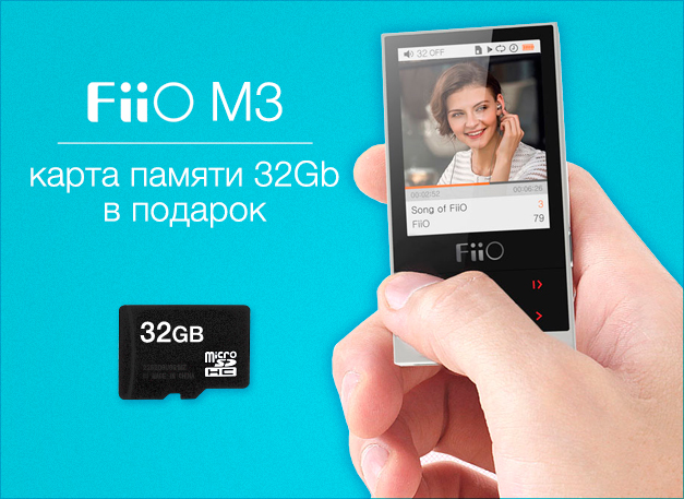 Каждый покупатель миниатюрного цифрового проигрывателя FiiO M3 получает в подарок карту памяти на 32GB!