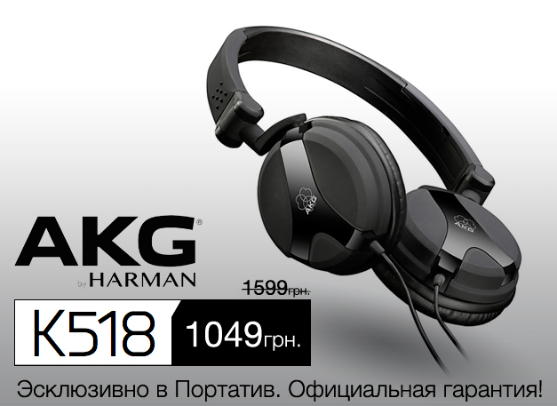 | Описание акции: | AKG K518 по цене 1049грн. с официальной гарантией!![]() Эксклюзивно в Портатив! Хит продаж, наушники AKG K518 по цене 1049грн. с официальной гарантией 12 месяцев! Своим мощным звучанием, отличной шумоизоляцией и запатентованным механизмом вращения чашек 3D-Axis, наушники K 518 успели покорить не только диджеев. Поторопитесь, количество и период акции ограничены! | |