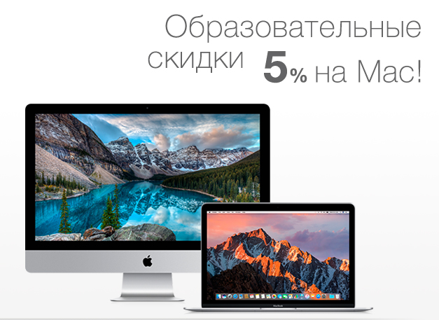 | Описание акции: | Apple MacBook или iMac покупай, скидку 5% в подарок получай!![]() При покупке Apple MacBook или iMac получайте скидку 5% в подарок! Для развития и улучшения процесса учебы, компания Apple предлагает сэкономить с помощью образовательной скидки. Предложение доступно всем студентам, абитуриентам, педагогам и сотрудникам любых учебных заведений. | |