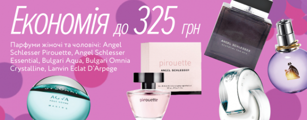 Описание акции: | З 20.10.2015 до 09.11.2015 поспішай придбати улюблені парфуми за доступними цінами, зекономивши до 325 гривень.![]() | |