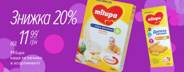 Купуйте у PROSTOR з 22.12.2015 до 08.01.2016 кашу та печиво ТМ Milupa від 11.99 грн.