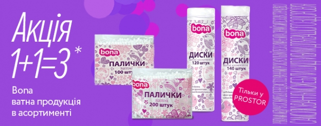 Описание акции: | З 16.02.2016 до 09.03.2016 купуй 2 одиниці ватної продукції ТМ Bona і 3-ю отримай у подарунок*. Акція діє на диски ватні косметичні 120, 140 шт/уп; палички ватні 100, 200 шт/уп.![]() | ||||||