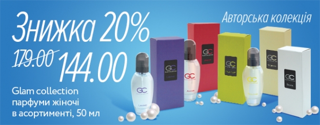 Тільки у PROSTOR! З 16.02.2016 до 09.03.2016 купуй будь-який аромат з колекції Glam collection зі знижкою 20%, всього за 144.00 грн.