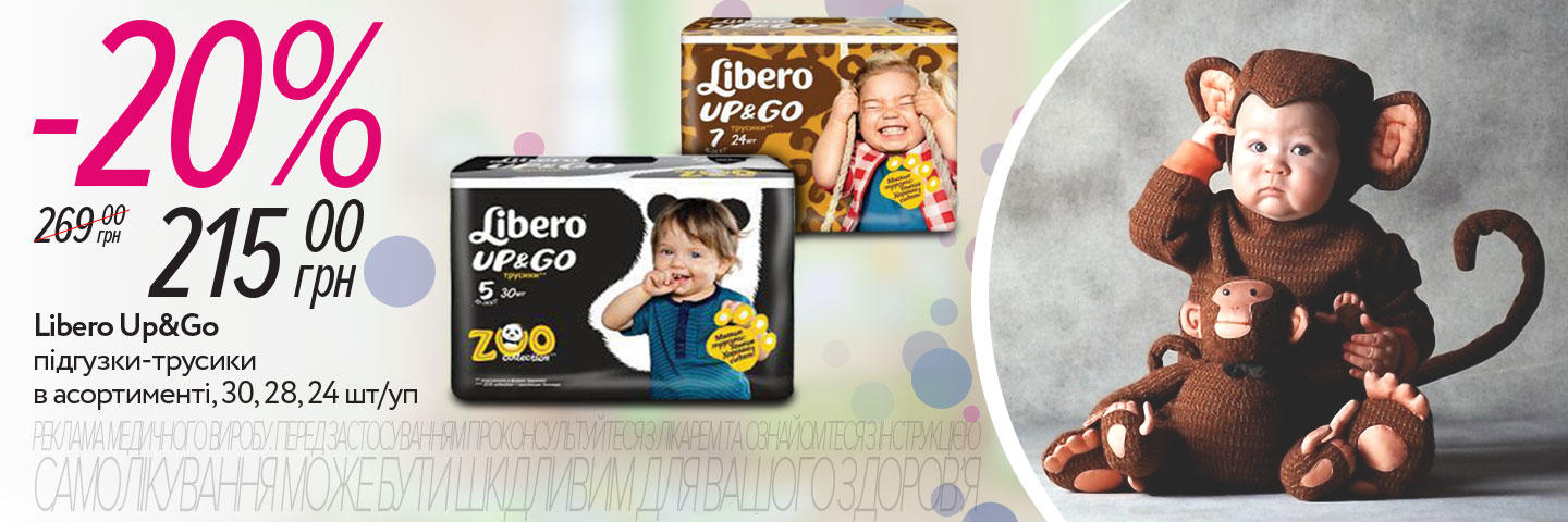 | Описание акции: | ![]() PROSTOR знает, что нужно малышам и родителям! В PROSTOR малышей ждут подгузники-трусики Libero Up&Go, что подарят им комфорт и свободу. А родителей – выгодное предложение – скидка 20% на подгузники, всего 215.00 грн. Компания оставляет за собой право обеспечить наличие акционного товара не во всех магазинах сети PROSTOR, а также изменять цены в период действия предложения. Товары не подлежат оптовой продажи. Оптовой считается покупка более 2-х единиц одного товара. ВНИМАНИЕ! Количество акционного товара ограничено! Фото товаров могут отличаться от товаров, находящихся в продаже. | ||||||