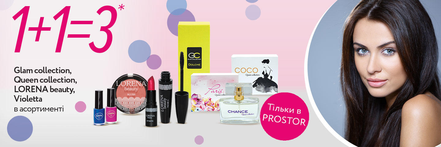 | Описание акции: | ![]() Для женщин, которые умеют удивлять! Красотки, только для вас соблазнительное предложение от PROSTOR! Купите любые два товара из линейки Violetta, LORENA beauty или линеек женских духов Glam collection и Queen collection и получайте третий в подарок*. Давайте знакомиться ближе! Violetta – современный модный бренд, который стал воплощением женственности с ее утонченностью, эксклюзивностью, шармом и элегантностью. Торговая марка Violetta – это: • изысканные коллекции бижутерии • трендовые аксессуары для волос • разнообразные аксессуары для маникюра и макияжа • качественные лаки и лечебные средства для ногтей • стильные капроновые колготки • эксклюзивные капсульные коллекции. Они помогут создать уникальный образ или же дополнить его стильной деталью. Glam collection – элегантная композиция из изысканных цветочных ароматов и ярких фруктовых нот, которые подчеркнут очарование и женственность владелицы. 5 ароматов коллекции WOMAN, AMOR, DOLCHE, SILVIA, LAVIN – это легкость, свежесть и утонченная чувственность. 12 эксклюзивных ароматов QUEEN COLLECTION - это 12 граней женской уникальности и неповторимости – COCO, PARIS, DONNA, CANDY, CHANCE, ELISSE, EMPRESS, CRYSTAL, NiNA, La’COSA, SHARLISE, PARTY. Каждый аромат имеет свой особенный букет, который запомнится надолго и подходит для различных ситуаций – деловой встречи, прогулки на свежем воздухе или романтического ужина. Ароматы наделят свою обладательницу уверенностью в успехе в достижении поставленных целей. Линейка LORENA beauty соединила в себе качество, стильный дизайн и современные модные тенденции в макияже. В коллекции декоративной косметики LORENA beauty представлены: карандаши для глаз, бровей, губ, подводки-фломастеры для глаз, блески для губ с шиммером и глянцевые помады для губ глянцевые и матовые, компактные пудры для лица, консилеры, румяна, туши для ресниц «Volume XXL драматический взгляд», «Waterproof», «Volume Extreme», «Volume & Length», «Volume 6», «3 in 1», «Volume x4», лак маникюрный. * Покупая два любых товара с пометкой "Только в PROSTOR" - третий получаешь в подарок. Под подарком подразумевается предоставление скидки в размере стоимости третьего товара в чеке с наименьшей ценой, среди трех выбранных товаров, которые участвуют в акции. Компания оставляет за собой право обеспечить наличие акционного товара не во всех магазинах сети PROSTOR, а также изменять цены в период действия предложения. Товары не подлежат оптовой продажи. Оптовой считается покупка более 2-х единиц одного товара. ВНИМАНИЕ! Количество акционного товара ограничено! Фото товаров могут отличаться от товаров, находящихся в продаже. | ||||||
