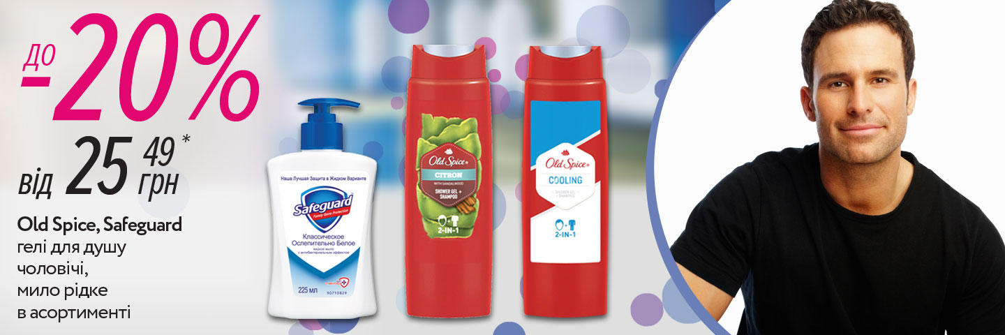 | Описание акции: | В PROSTOR скидки до 20% на мужские средства для ухода торговых марок Old Spice и Safeguard – всего лишь от 25. 49 грн. * Цена указана с учетом скидки. Информацию о соотношении размера скидки к предыдущей цене реализации товара узнавайте в сети магазинов PROSTOR. Компания оставляет за собой право обеспечить наличие акционного товара не во всех магазинах сети PROSTOR, а также изменять цены в период действия предложения. Товары не подлежат оптовой продажи. Оптовой считается покупка более 2-х единиц одного товара. ВНИМАНИЕ! Количество акционного товара ограничено! Фото товаров могут отличаться от товаров, находящихся в продаже. ![]() | ||||||
