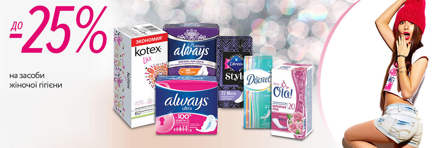 | Описание акции: | СуперЗащита по СуперСкидкам Покупай прокладки гигиенические или ежедневные со скидками: • прокладки гигиенические Always Classic, 7, 8, 9, 10 шт/уп со скидкой 25% - от 12.69 грн; • прокладки гигиенические Always Ultra, 7, 8, 10 шт/уп со скидкой 15% - за 21.49 грн; • прокладки ежедневные Discreet, 20 шт/уп со скидкой 20% - от 13.49 грн; • прокладки ежедневные Kotex, 20, 60, 100 шт/уп со скидкой 20% - от 16.49 грн; • прокладки ежедневные Libresse, 22, 32 шт/уп со скидкой 20% - от 18.49 грн; • прокладки ежедневные Ola Daily, 20 шт/уп со скидкой 20% - за 14.79 грн. ![]() Компания оставляет за собой право обеспечить присутствие акционного товара не во всех магазинах сети PROSTOR, а также изменять цены в период действия предложения. Товары не подлежат оптовом продажи. Оптовой считается покупка более 2-х единиц одного товара. ВНИМАНИЕ! Количество акционного товара ограничено! Фото товаров могут отличаться от товаров, находящихся в продаже. | ||||||