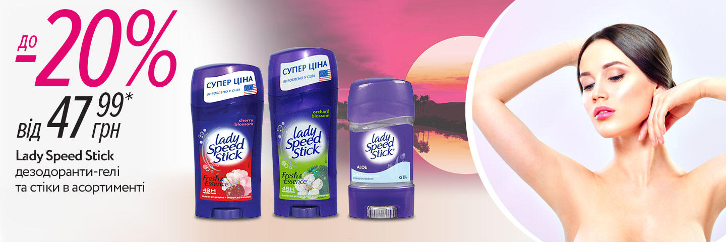 | Описание акции: | Lady Speed Stick – твой маленький секрет ухода Посетите PROSTOR, где Вас ждут дезодоранты-гели и стики со скидками до 20% - только от 47.99 грн. ![]() * Цена указана с учетом скидки. Информацию о соотношении размера скидки к предыдущей цене реализации товара узнавайте в сети магазинов PROSTOR. Компания оставляет за собой право обеспечить присутствие акционного товара не во всех магазинах сети PROSTOR, а также изменять цены в период действия предложения. Товары не подлежат оптовом продажи. Оптовой считается покупка более 2-х единиц одного товара. ВНИМАНИЕ! Количество акционного товара ограничено! Фото товаров могут отличаться от товаров, находящихся в продаже. | ||||||