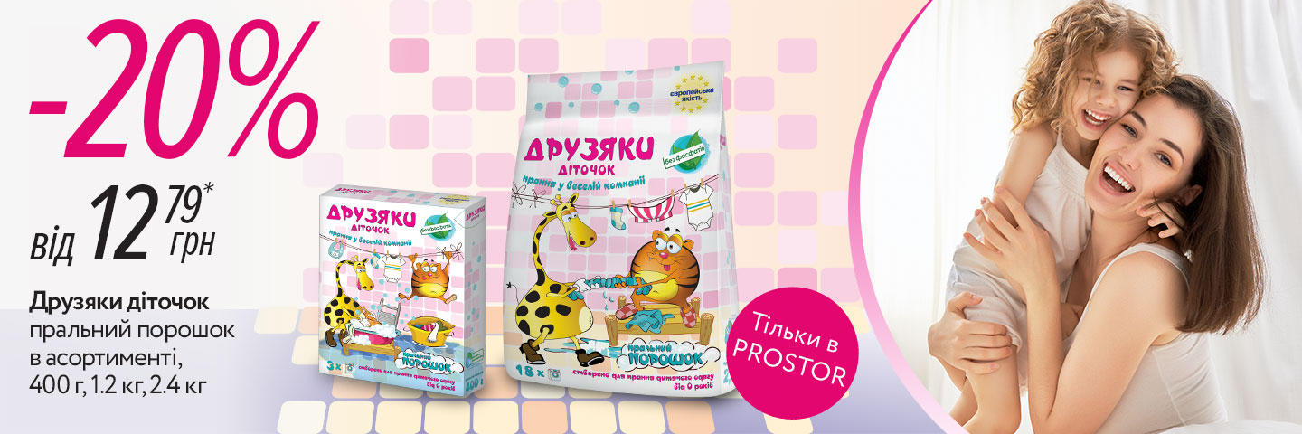 | Описание акции: | ![]() Стирку детских вещей порошку Друзяки діточок доверяют не только мамы, но и уважаемые эксперты. Если вы уже в нашей команде или же собираетесь к ней присоединиться, тогда не стоит медлить. Ведь только с 31.01.2017 по 28.02.2017 в сети PROSTOR действует скидка 20% на стиральный порошок Друзяки діточок, 400 г, 1.2 кг и 2.4 кг. * Цена указана с учетом скидки. Информацию о соотношении размера скидки к предыдущей цене реализации товара узнавайте в сети магазинов PROSTOR. Компания оставляет за собой право обеспечить присутствие акционного товара не во всех магазинах сети PROSTOR, а также изменять цены в период действия предложения. Товары не подлежат оптовом продажи. Оптовой считается покупка более 2-х единиц одного товара. ВНИМАНИЕ! Количество акционного товара ограничено! Фото товаров могут отличаться от товаров, находящихся в продаже. | ||||||