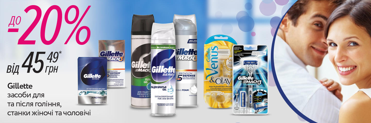 | Описание акции: | ![]() Хотите сэкономить до 20% на станках и средствах для бритья Gillette? Тогда посетите с 31.01.2017 по 28.02.2017 сеть магазинов PROSTOR, где по суперценам – от 45.49 грн - вы можете приобрести средства для и после бритья, станки мужские и женские торговой марки Gillette. * Цена указана с учетом скидки. Информацию о соотношении размера скидки к предыдущей цене реализации товара узнавайте в сети магазинов PROSTOR. Компания оставляет за собой право обеспечить присутствие акционного товара не во всех магазинах сети PROSTOR, а также изменять цены в период действия предложения. Товары не подлежат оптовом продажи. Оптовой считается покупка более 2-х единиц одного товара. ВНИМАНИЕ! Количество акционного товара ограничено! Фото товаров могут отличаться от товаров, находящихся в продаже. | ||||||