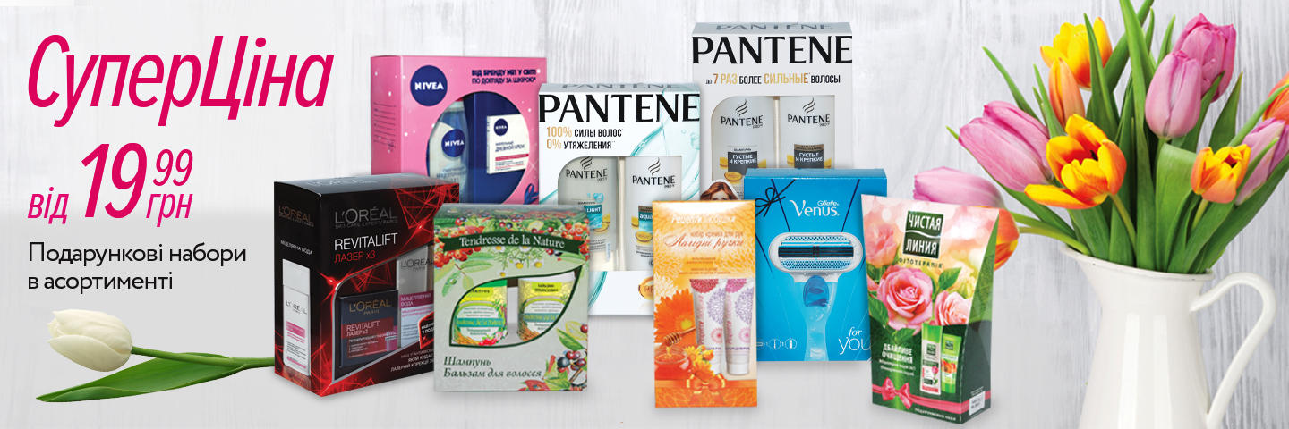 | Описание акции: | ![]() Лучшая идея подарка на 8 Марта! Не знаете, что подарить своим дорогим женщинам на Восьмое марта? Сами мечтаете о интересном и полезном подарке? Мечты должны сбываться! PROSTOR подготовил коллекцию подарочных наборов для ухода по суперценам от 19.99 грн. Спешите купить с 01.03.2017 по 31.03.2017 наборы любимых торговых марок – Pantene, Nivea, L’Oreal Revitalift, Tendresse de la Nature, Gillette Venus, Рецепти Любушки, Чистая Линия - по соблазнительным ценам. Компания оставляет за собой право обеспечить наличие акционного товара не во всех магазинах сети PROSTOR, а также изменять цены в период действия предложения. Товары не подлежат оптовой продажи. Оптовой считается покупка более 2-х единиц одного товара. ВНИМАНИЕ! Количество акционного товара ограничено! Фото товаров могут отличаться от товаров, находящихся в продаже. | ||||||