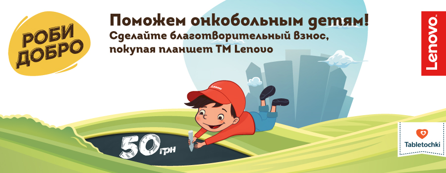 Описание акции: | Сеть магазинов ringoo совместно с Благотворительным Фондом Tabletochki и компанией Lenovo от вашего имени помогут маленьким онкобольным пациентам! Всех неравнодушных приглашаем в ringoo, чтобы сделать свой вклад в доброе дело. Покупайте любой планшет ТМ Lenovo, а 50 гривен от суммы вашей покупки будут перечислены в фонд «Таблеточки» для создания годового запаса сопровождающих лекарств онкобольным детям! Для вас – никаких дополнительных затрат, так как вы приобретете планшет по обычной цене. Благотворительная программа действует с 15 августа 2016 года по 15 октября 2016 года. Миссия фонда «Таблеточки» Таблеточки – волонтерский благотворительный фонд №1 в Украине, который оказывает помощь онкобольным детям. Волонтерское движение создано в октябре 2011 года, официальная регистрация фонда – сентябрь 2013 года. Результаты работы фонда: Помощь в размере 58,08 миллиона гривен; Пациенты НДСБ «Охматдет» единственные в Украине получают абсолютно безопасную кровь во время донорских переливаний; Закупили современную медицинскую аппаратуру и расходные материалы к ней в киевские и региональные медицинские учреждения; Обеспечили лекарствами 1500 детей; Обеспечили реагенты и материалы для проверки крови для 15 500 доноров; Помогли уехать на лечение за рубежом 30 детям. Не оставайтесь безразличными! Помогать – это вместе! ![]() ВАЖНО! Организаторы благотворительной Акции – благотворительный фонд «Таблеточки» (веб-сайт tabletochki.org). Производитель акционных товаров ТМ Lenovo. Период проведения благотворительной Акции: с 15 августа 2016 по 15 октября 2016 года. Целью благотворительной Акции является добровольный сбор средств на закупку медикаментов и расходных материалов для онкологических отделений учреждений здравоохранения. Акционные товары – любые представленные модели планшетов ТМ Lenovo. Акция проходит на всей территории Украины. Акция действует только при наличии акционного товара. К участию в Акции приглашаются граждане Украины, которым исполнилось 18 лет. Во время проведения Акции сбор персональных данных участников не проводится. Детали Акции спрашивайте у продавцов-консультантов. | ||||||