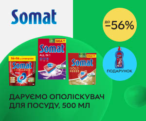 | Описание акции: | Скидки до 56% на средства для посудомоечных машин Somat + дарим ополаскиватель для посуды, 500 мл при покупке на сумму от 999 грн!