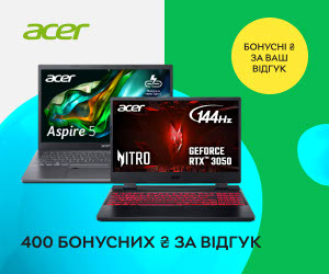| Описание акции: | Начисляем 400 бонусных ₴ за отзыв к ноутбукам Acer!