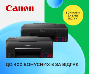 | Описание акции: | Начисляем до 400 бонусных ₴ за отзывы при покупке принтеров и МФУ Canon!![]() | ||||||