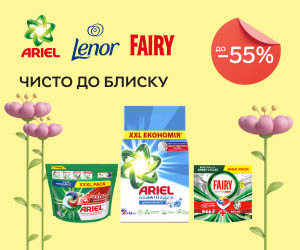 | Описание акции: | Скидки до 55% на бытовую химию Ariel, Fairy, Lenor и другие!