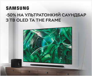 | Описание акции: | Скидка 50% на Ультратонкий саундбар при покупке акционных ТВ Samsung OLED та The Frame 55", 65", 75" та 77''!![]() | ||||||