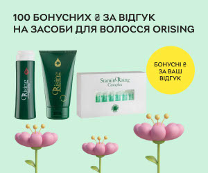 | Описание акции: | Начисляем 100 бонусных гривен за отзыв на средства для волос ORising!![]() | ||||||