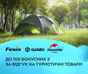 | Описание акции: | Получите до 100 ₴ бонусов за отзыв на туристические товары ТМ Fenix, Ganzo, Naturehike, Work Sharp!![]() | ||||||
