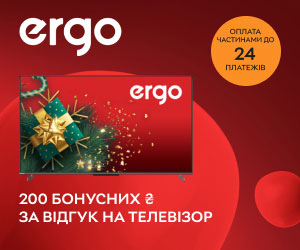 | Описание акции: | Начисляем 200 бонусных ₴ за отзыв при покупке акционных телевизоров ERGO!![]() | ||||||