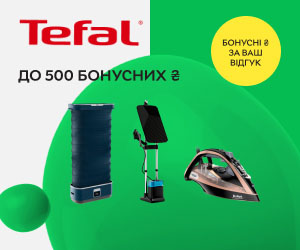| Описание акции: | Получите до 500 бонусных ₴ за отзыв о утюгах и гладильных системах Tefal.![]() | ||||||
