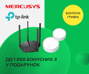 | Описание акции: | Покупайте сетевое оборудование TP-Link и Mercusys выгодно! До 1000 бонусных ₴ в подарок или удобная оплата частями до 24 платежей![]() | ||||||