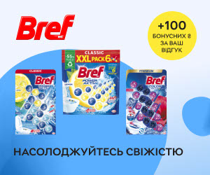| Описание акции: | Получайте 100 бонусных ₴ за отзыв на туалетные средства от Bref!![]() | ||||||