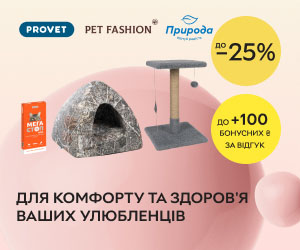 | Описание акции: | Скидки до 25% + до 100 бонусных ₴ за отзыв на товары для кошек и собак ТМ PROVET, Природа,Pet Fashion!![]() | ||||||