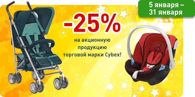 Описание акции: | Акция! Скидка -25% на акционную продукцию торговой марки Cybex!![]() | ||||||