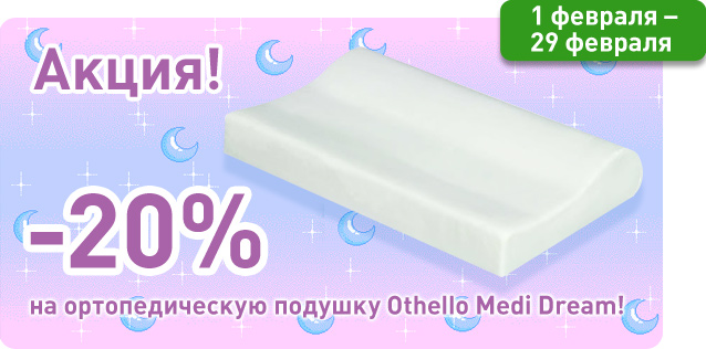 Описание акции: | Ортопедическая подушка Othello Medi Dream со скидкой 20%!![]() | ||||||