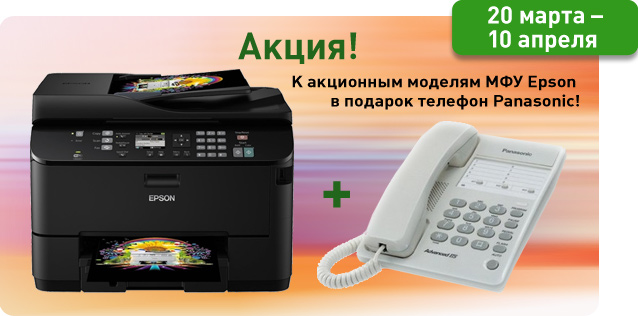 Описание акции: | Акция! Каждый покупатель акционных моделей МФУ Epson получает в подарок телефон Panasonic! ![]() | ||||||
