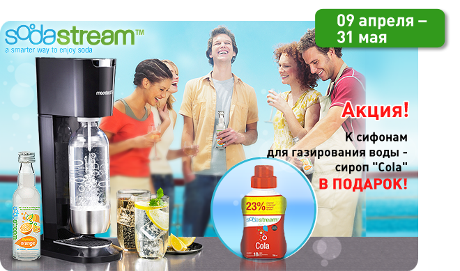 Описание акции: | Акция! При покупке аппарата для газирования воды - сироп "Cola" в подарок! Готовить газированную воду и безалкогольные газированные напитки с сифонами SODASTREAM стало очень просто. Всего за мгновение наслаждайтесь великолепным вкусом любимого напитка! Количество акционных моделей ограничено! ![]() | ||||||