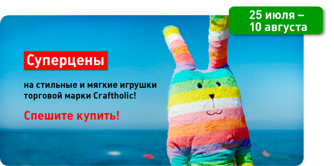 Описание акции: | Акция! Суперцены на мягкие игрушки торговой марки Craftholic! Спешите, количество акционных товаров ограничено! Игрушки по 383 грн. вместо 500 грн. ![]() | ||||||