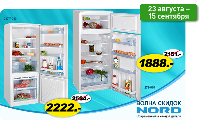 Описание акции: | Акция! Воспользуйтесь уникальной возможностью приобрести двухкамерный холодильник NORD со скидкой! Количество акционных моделей ограничено! Двухкамерный холодильник NORD 271-010 1899 грн., Двухкамерный холодильник NORD 237-7-010 2223 грн. ![]() | ||||||