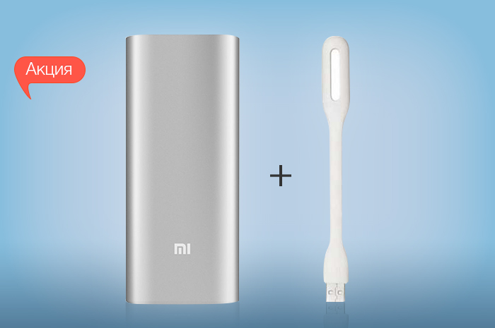 Каждый покупатель УМБ Xiaomi Mi Power 16000 mAh получает в подарок гибкую USB лампу Xiaomi Mi LED White!