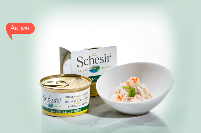 Каждый покупатель консерв для кошек Schesir Chicken Surimi может получить в подарок каждую пятую консерву для кошек.