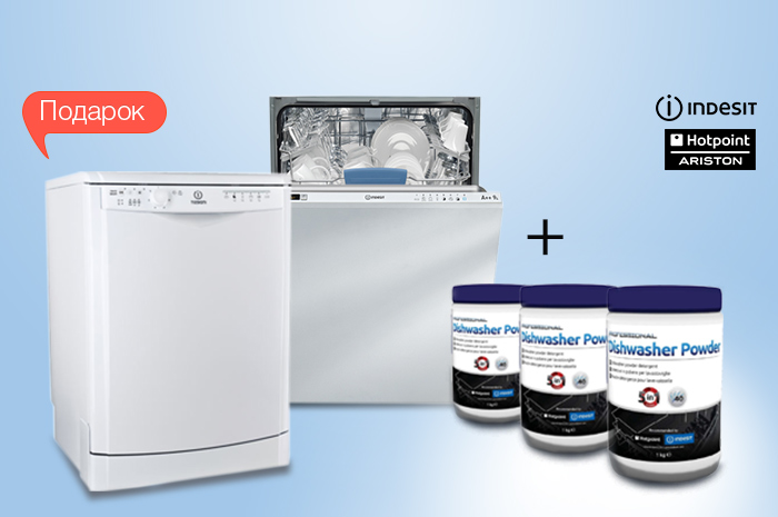 Приобретайте любую посудомоечную машину INDESIT и HOTPOINT ARISTON и получите в подарок 3 упаковки моющего порошка INDESIT (C00308532) 1 кг!