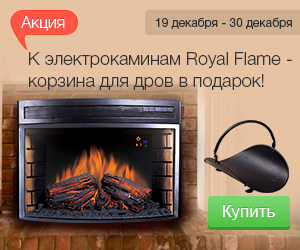 Каждый покупатель акционных электрокаминов Royal Flame получает в подарок корзину для дров!