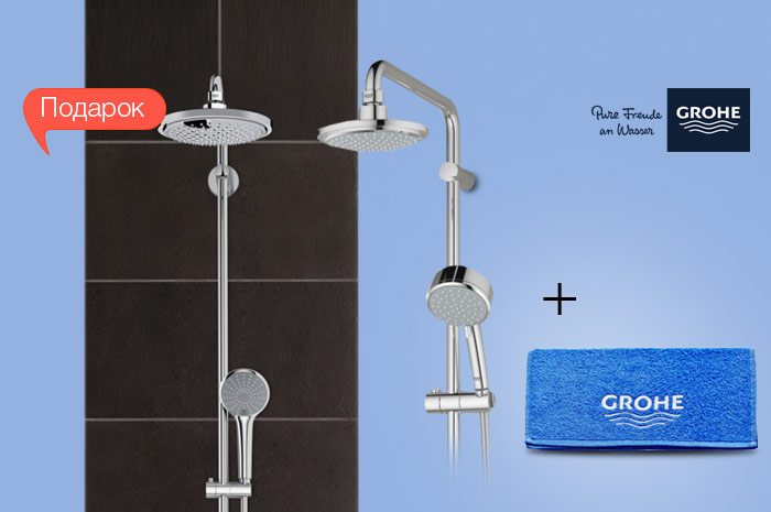 Описание акции: | Каждый покупатель акционных душевых гарнитуров GROHE получает фирменное полотенце в подарок!![]() | ||||||