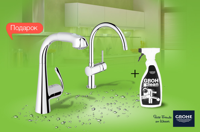 Описание акции: | При покупке акционного кухонного смесителя GROHE получите средство для сантехники и ванной комнаты GROHE Grohclean 500 мл в подарок!![]() | ||||||