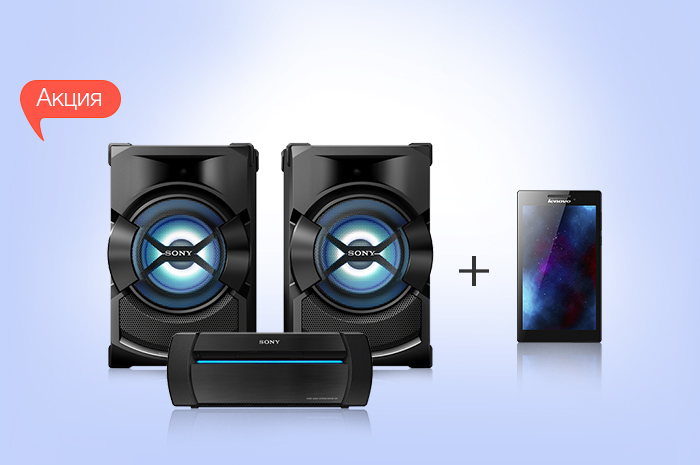 Описание акции: | Каждый покупатель микросистемы Sony SHAKE-X1D гарантировано получает в подарок планшет Lenovo TAB 2 A7-30 7" 2G 8GB Black!![]() | ||||||