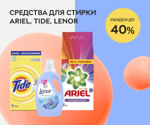| Описание акции: | Скидки до 40% на средства для стирки Ariel, Tide, Lenor!![]() | ||||||