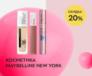 | Описание акции: | Скидка 20% на декоративную косметику Maybelline New York!![]() | ||||||