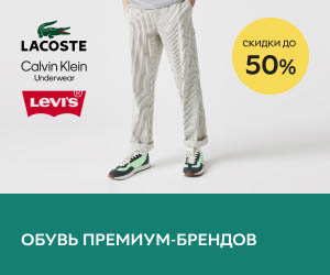| Описание акции: | Скидки до 50% на обувь Lacoste, Calvin Klein, Levi's!![]() | ||||||