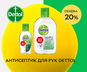 | Описание акции: | Скидка 20% на антисептик для рук Dettol!![]() | ||||||